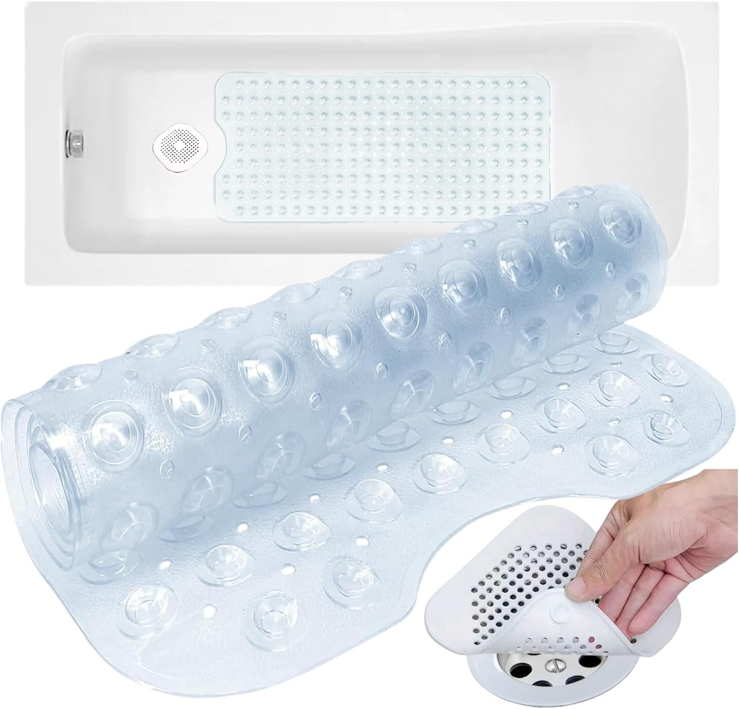 Zuvo -Extra Long Bath Mat (100 X 40Cm, Clear) - Shower Mat Non Slip anti Mould,