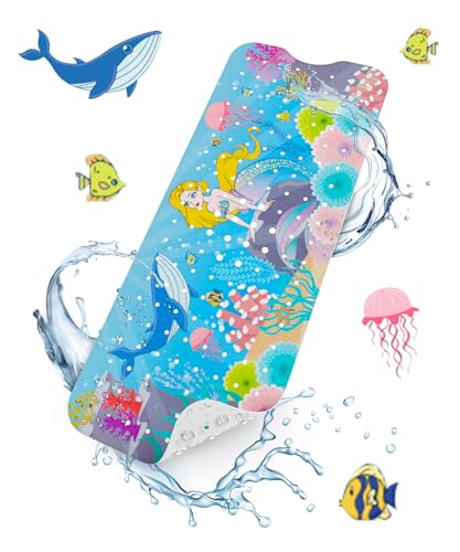 HITSLAM Baby Bath Mat Non Slip, Bathtub Mat Non Slip, 101 x 40cm Extra Long Bath Tub Mat for Kids, Bathroom Shower Mat with Suction Cups and Drain Holes, Soft on Feet, Machine Washable, Mermaid