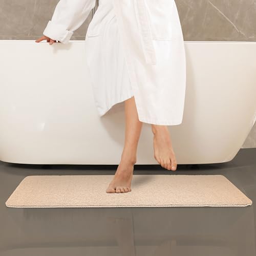 Extra Long Non-Slip Bath Mat, 15.7×36 Inch, PVC Loofah Bathroom Mats, Loofah Mats for Shower and Bathroom, Quick Drying, Beige