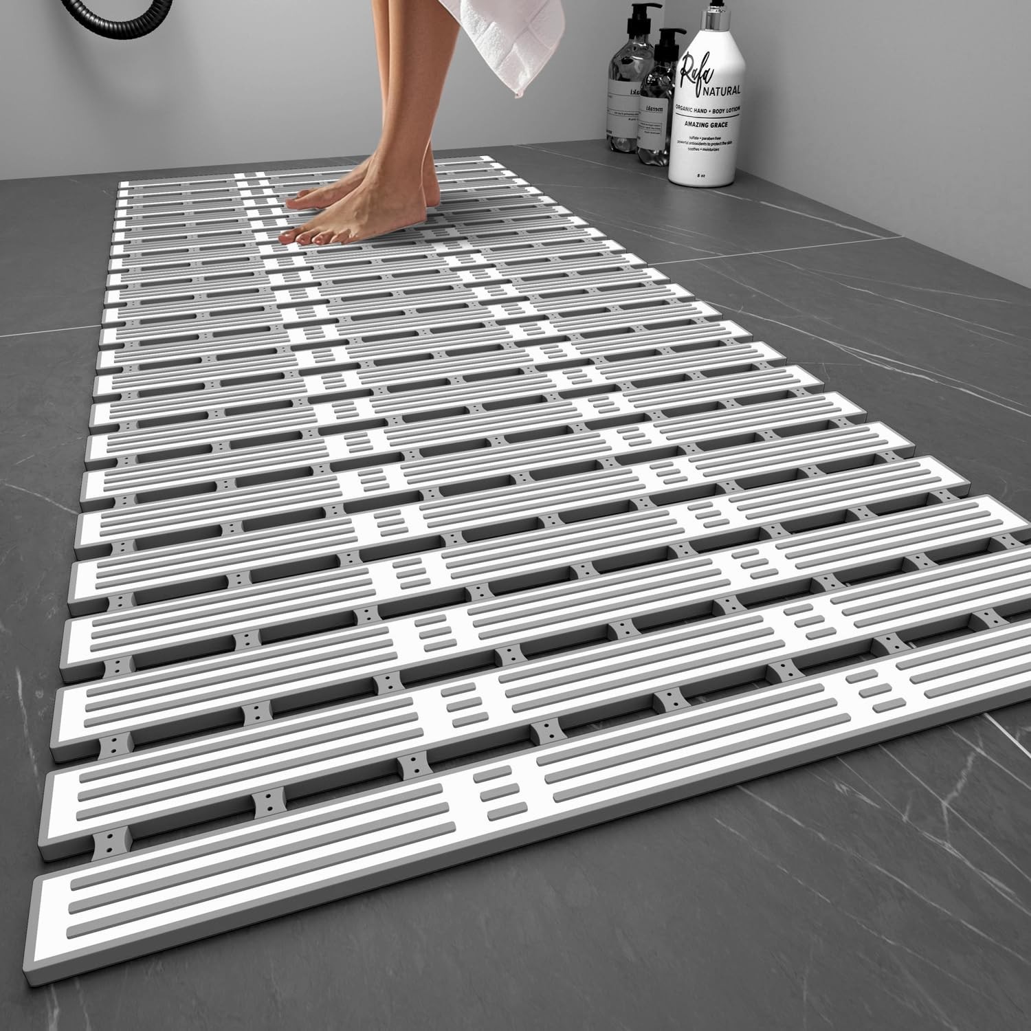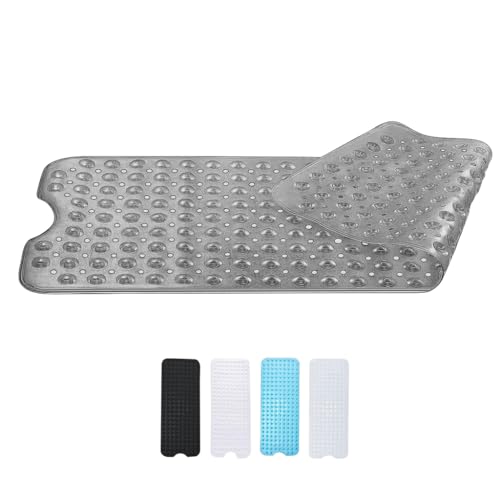 Onihan Shower Mat Non Slip Anti Mould,36×16 INCH Extra Long Bath Mat Non Slip for Shower and Bath,Rubber Nonslip Bathmat for DIY Cut,Machine Washable,Safe Shower for the Elderly and Children(Grey)