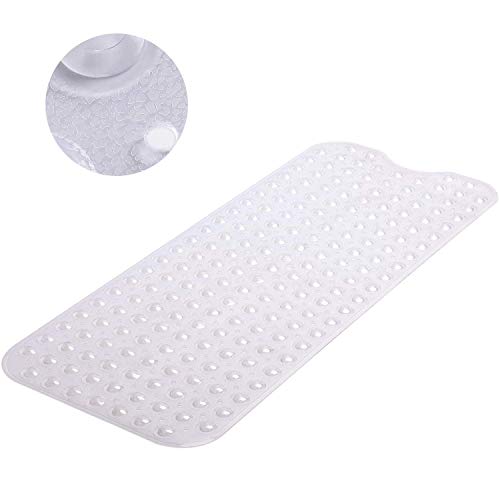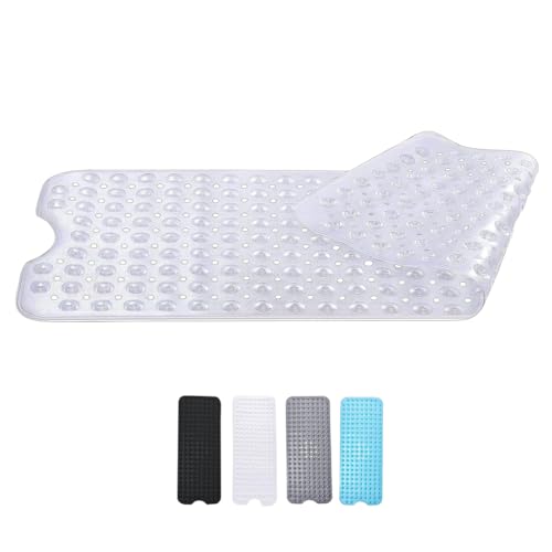 ANSIO® Long Bath Mat PVC Non-Slip Anti Mould bath Mat with Drain Holes & Suction Cups Machine Washable 100 cm x 40 cm / 40 x 15.7 Inches - Clear