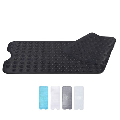 Zuvo -Extra Long Bath Mat (100 X 40cm, Black) - Shower Mat Non Slip Anti Mould, Machine Washable Rubber Shower Mat with Powerful Suction Cups for Kids and Elderly