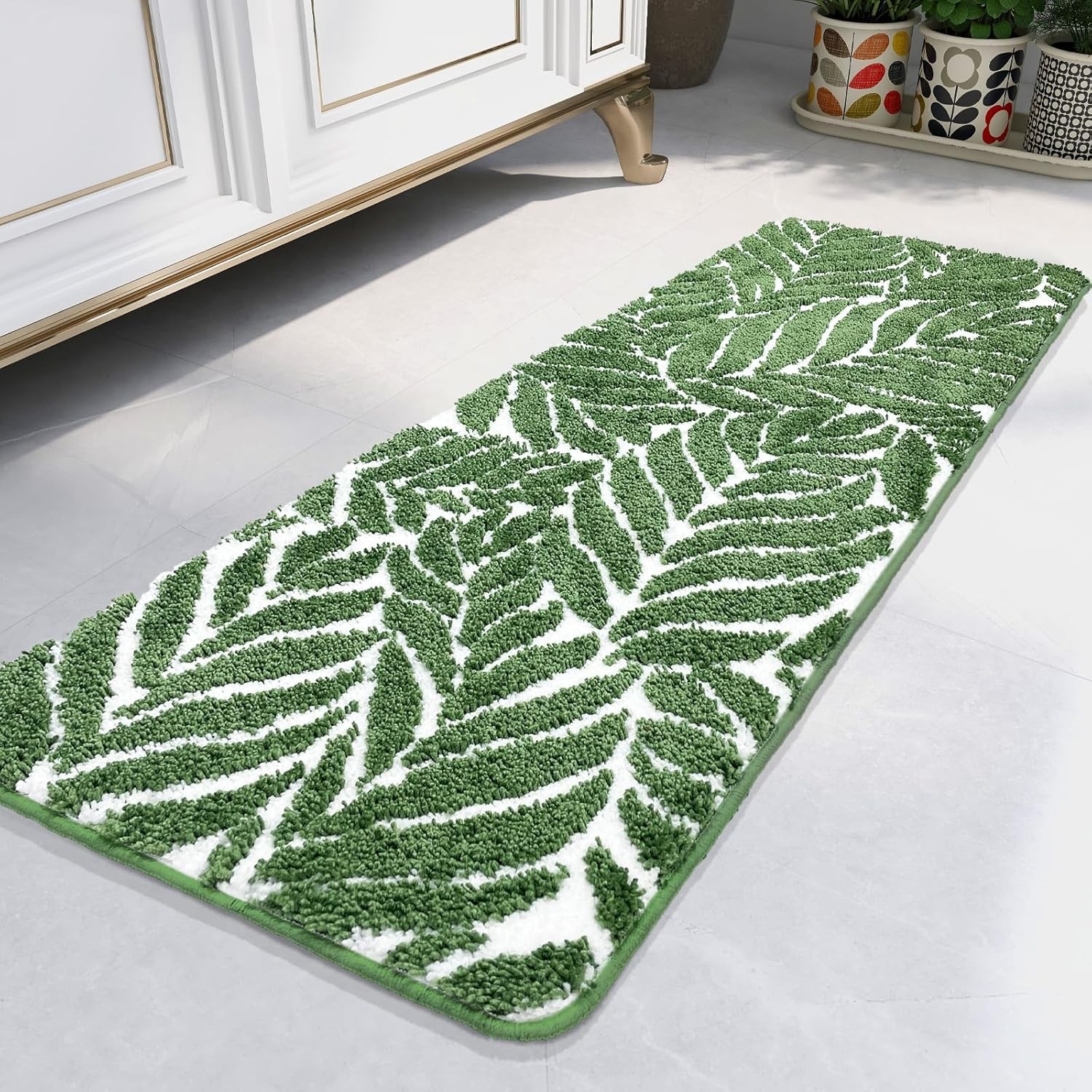 Bathroom Runner Rug - Non Slip Dark Green Long Bathroom Rug Long Bath Mat Leaf
