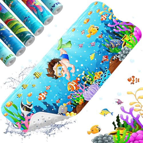 LATERN Bathtub Mat for Kid, 100CM x 40CM Extra Long Bath Tub Mat Anti Slip Shower Mat with Suction Cups and Drain Holes for Bathroom Wet Floor - Machine Washable (Submarine)