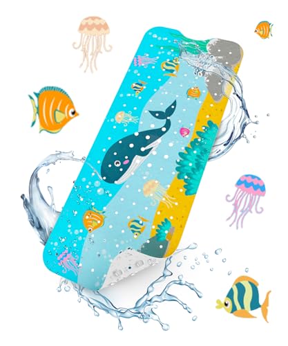 HITSLAM Baby Bath Mat Non Slip, Bathtub Mat Non Slip, 101 x 40cm Extra Long Bath Tub Mat for Kids, Bathroom Shower Mat with Suction Cups and Drain Holes, Soft on Feet, Machine Washable, Whale