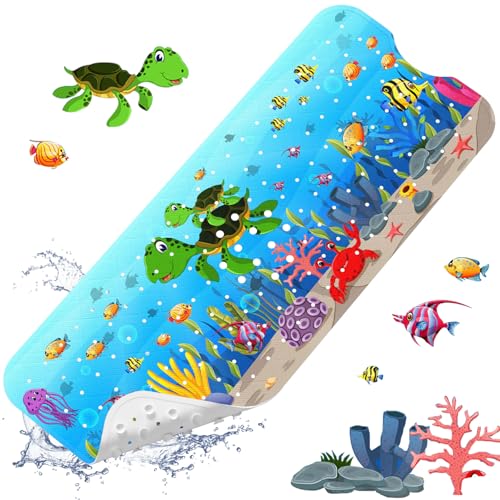 XIYUNTE Baby Bath Mats Non Slip Anti Mould - 100x40cm Extra Long Non Slip Bath Mat for Kids, Eco-Friendly Toddler Bath Mat with Suction Cups for Secure Grip, Easy to Clean & Easy Drying, Sea Turtle