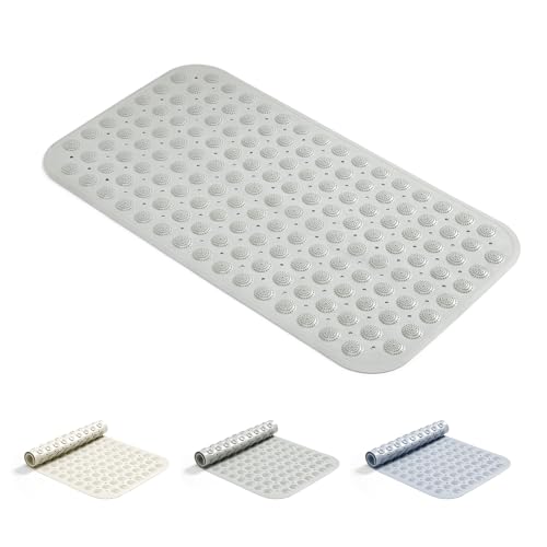 Onihan Shower Mat Non Slip Anti Mould,27×16 INCH Extra Long Bath Mat Non Slip for Shower and Bath,Rubber Nonslip Bathmat for DIY Cut,Machine Washable,Safe Shower for the Elderly and Children(Grey)