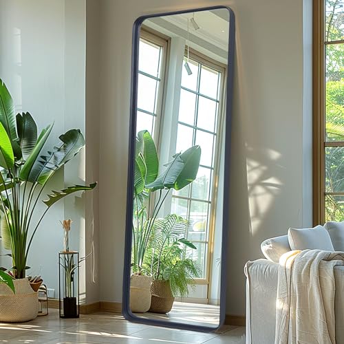 Warmiehomy Free Standing Full Length Mirror, 150x40cm Large Arched Hanging or Leaning, Long Floor Mirror with Black Aluminum Alloy Frame for Living Room or Bedroom