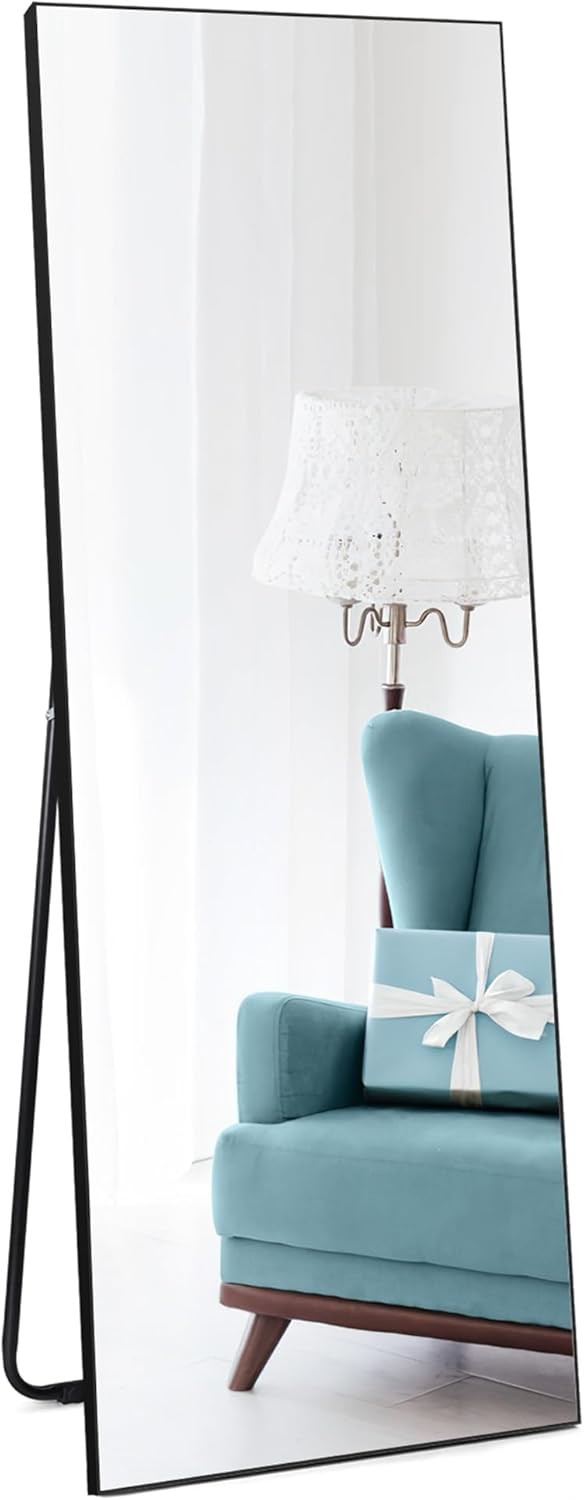 HORLIMER 65x24 inches Full Length Mirrors with Black Frame, 165x60 cm Large Long Mirror for Wall Hanging or Floor Free Standing, for Bathroom Living Room Bedroom