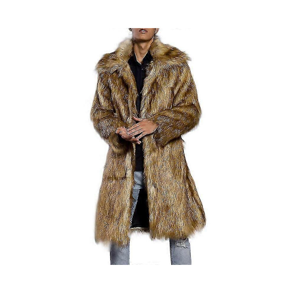 (XXL, B-brown) Men's Luxury Faux Fur Cardigan Coat, Thicked Thermal Long Coat For Winter Ski Outfit