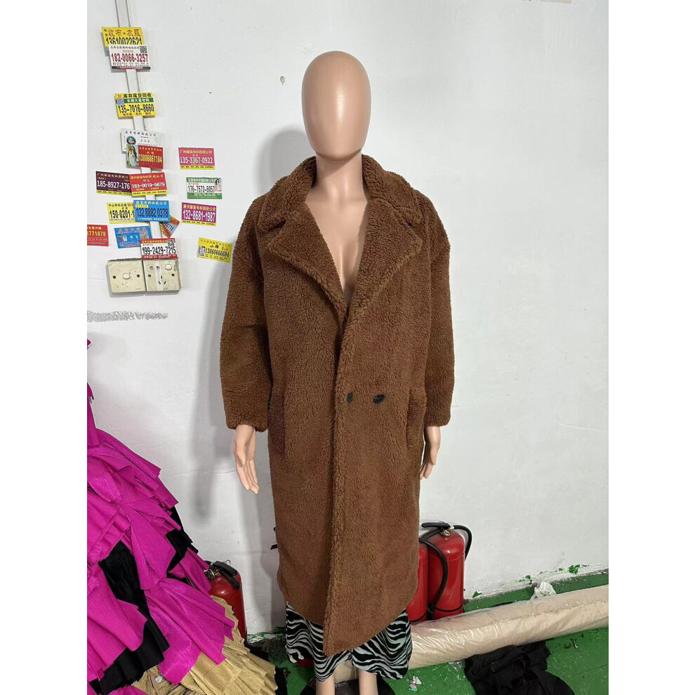 (M, brown) Autumn Winter Long Coat Woman Plush Warm Faux Fur Coat Women Fur Teddy