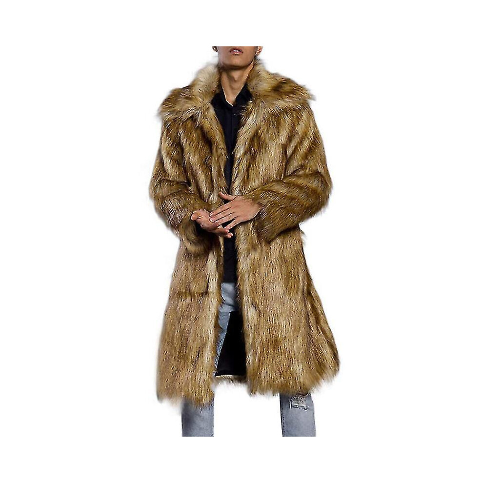 (L, A-brown) Men's Luxury Faux Fur Cardigan Coat, Thicked Thermal Long Coat For Winter Ski Outfit