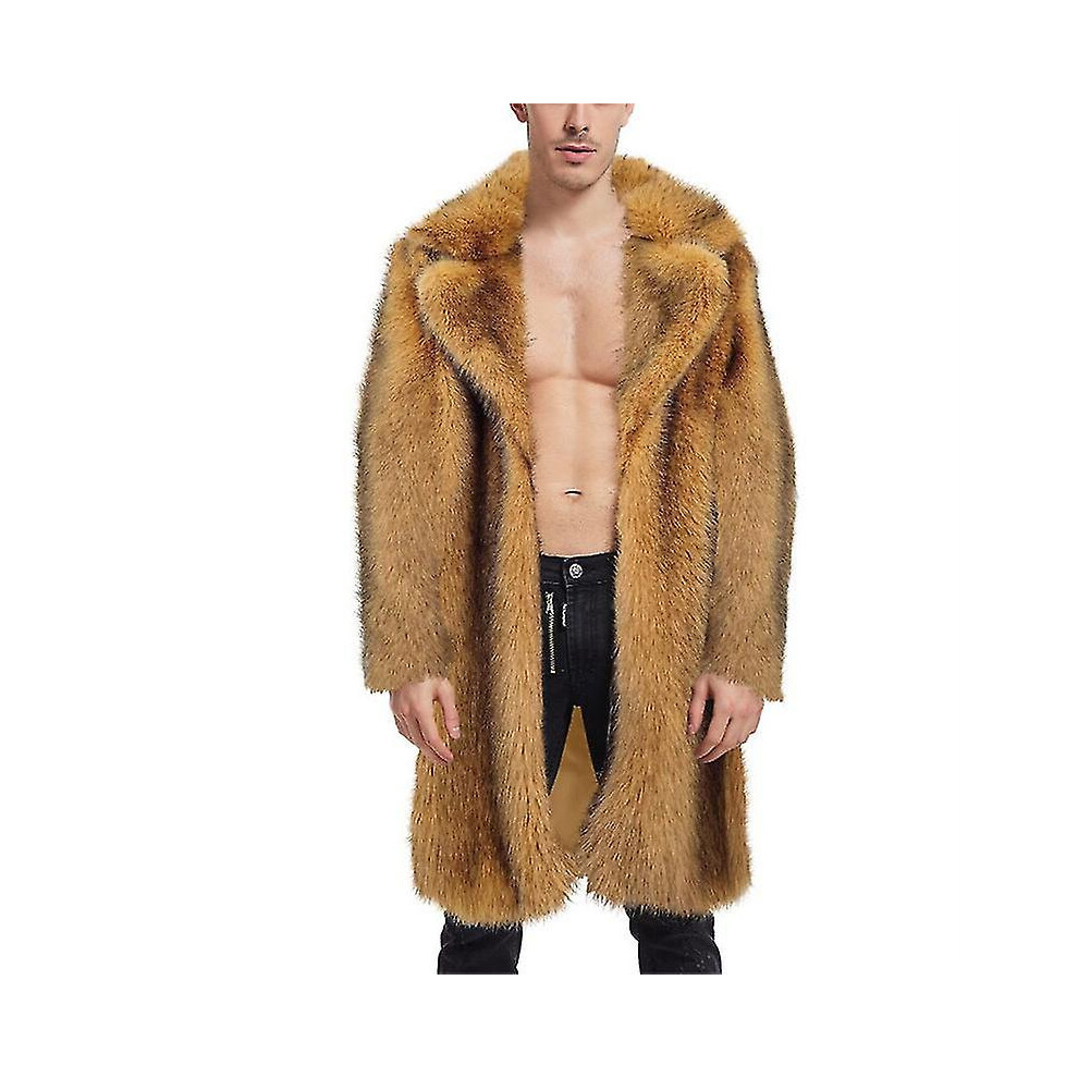 (B-brown, S) Men's Luxury Faux Fur Cardigan Coat, Thicked Thermal Long Coat For Winter Ski Outfit