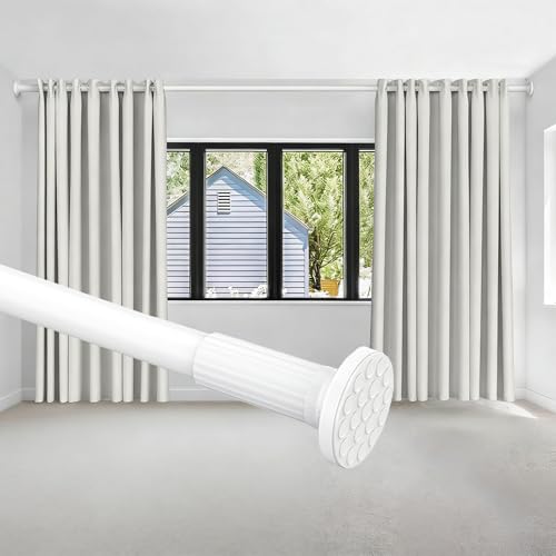 Curtain Poles Extendable Pole Non-Slip Tension Rods Shower Curtain Rods Extra Long for Living Room, Bedroom, Bathroom, Balcony (84-270CM φ32mm White)