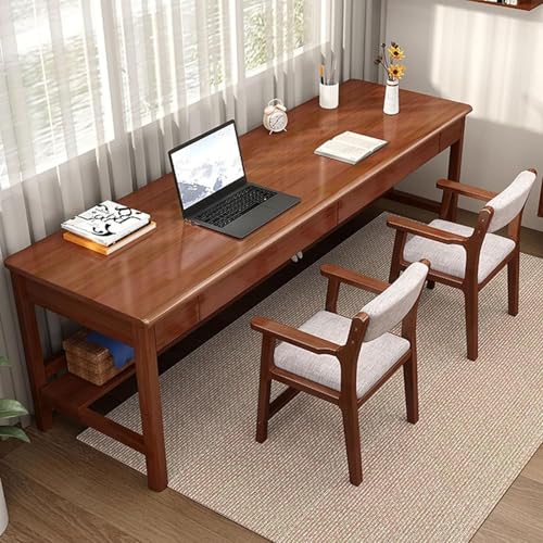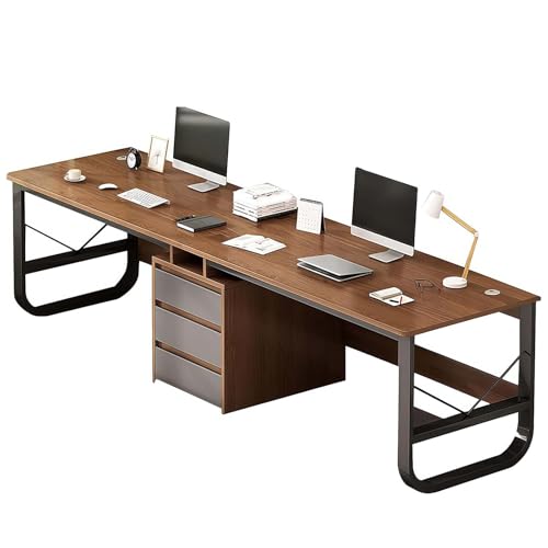 GAOCUNBING Computer Desk, Double Workstation Desk with Drawers, Wood Writing Table Modern Double Office Desk, Extra Long Computer Desk for Home Office (Walnut, 240cm/94.5in)