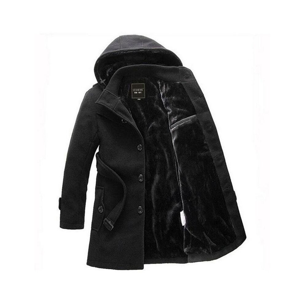 2017 Men Thick Warm Winter Trench Coat Long Section Fleece Jacket Overcoat 3XL Turn Down Collar Single Breasted Solid Overcoat