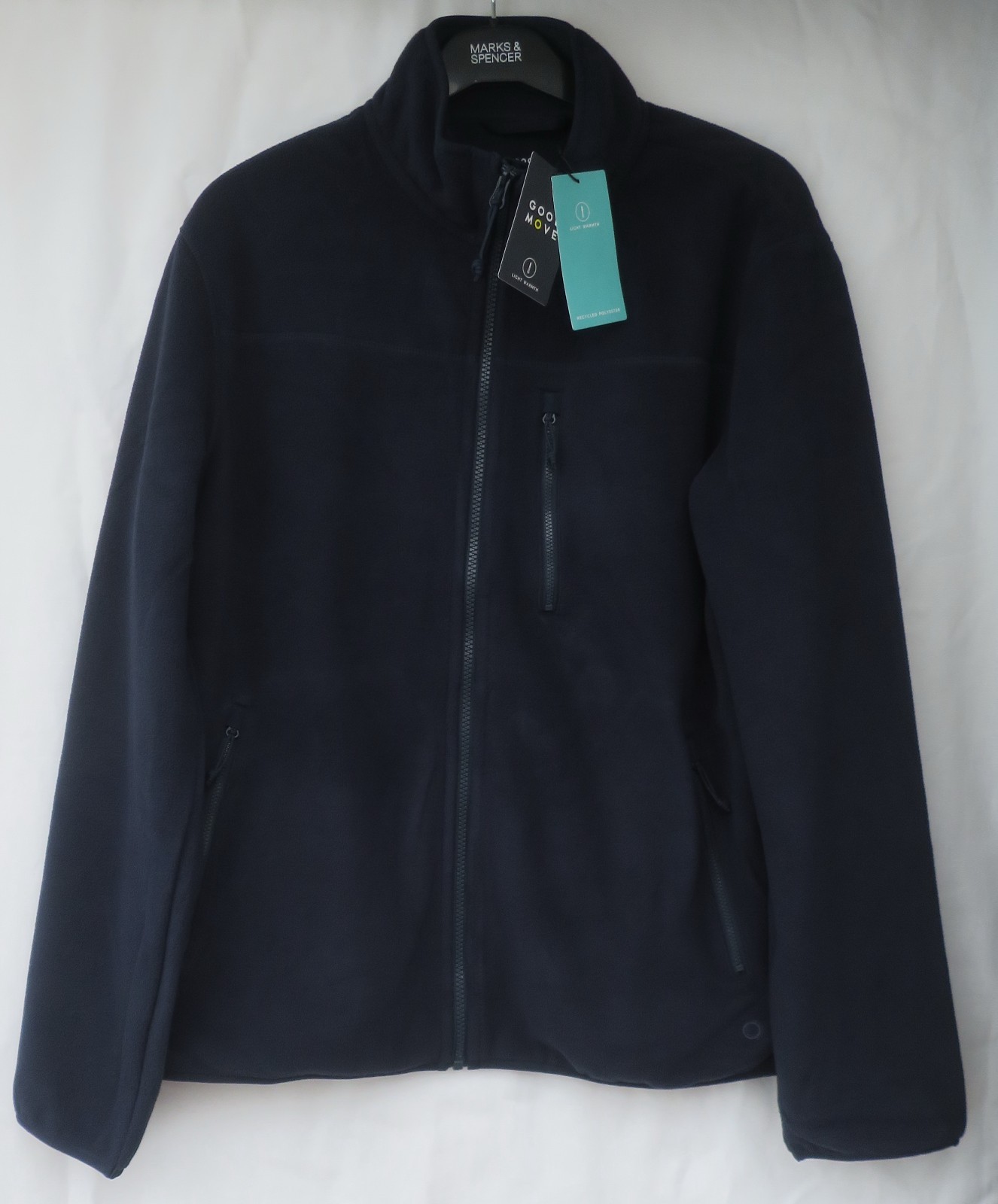 MEN'S MARKS AND SPENCER GOODMOVE NAVY LONG SLEEVED FLEECE JACKET SIZE L LONG