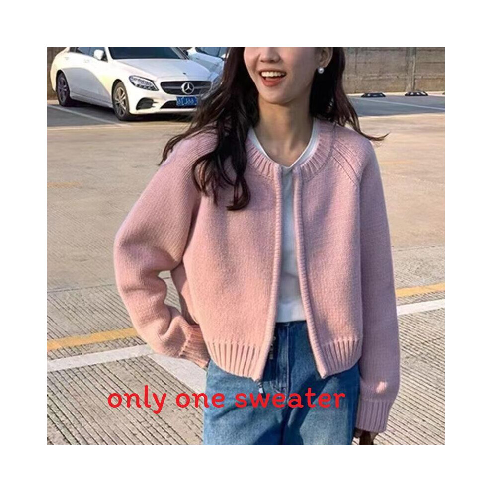 (Pink) Long Sleeve Grey Cardigan With Zipper Knit Fabric Casual Sweater Wear For Winter