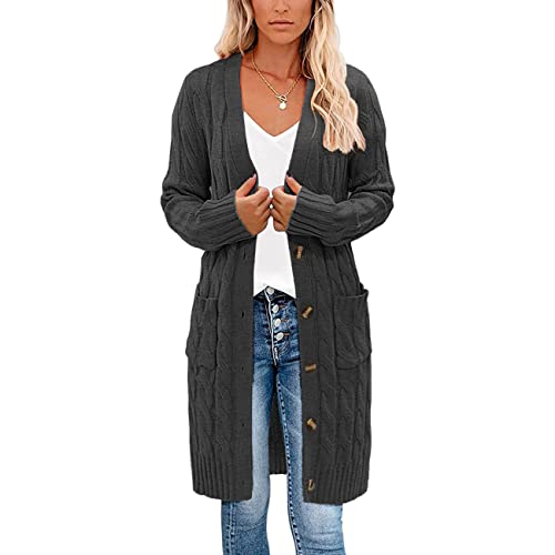 Easygou Womens Button Cardigan Sweater Coat Cable Chunky Knit Oversized Sweater Soft Long Sleeve Open Front Slouchy Pocket Outwear Coat (Grey,L)