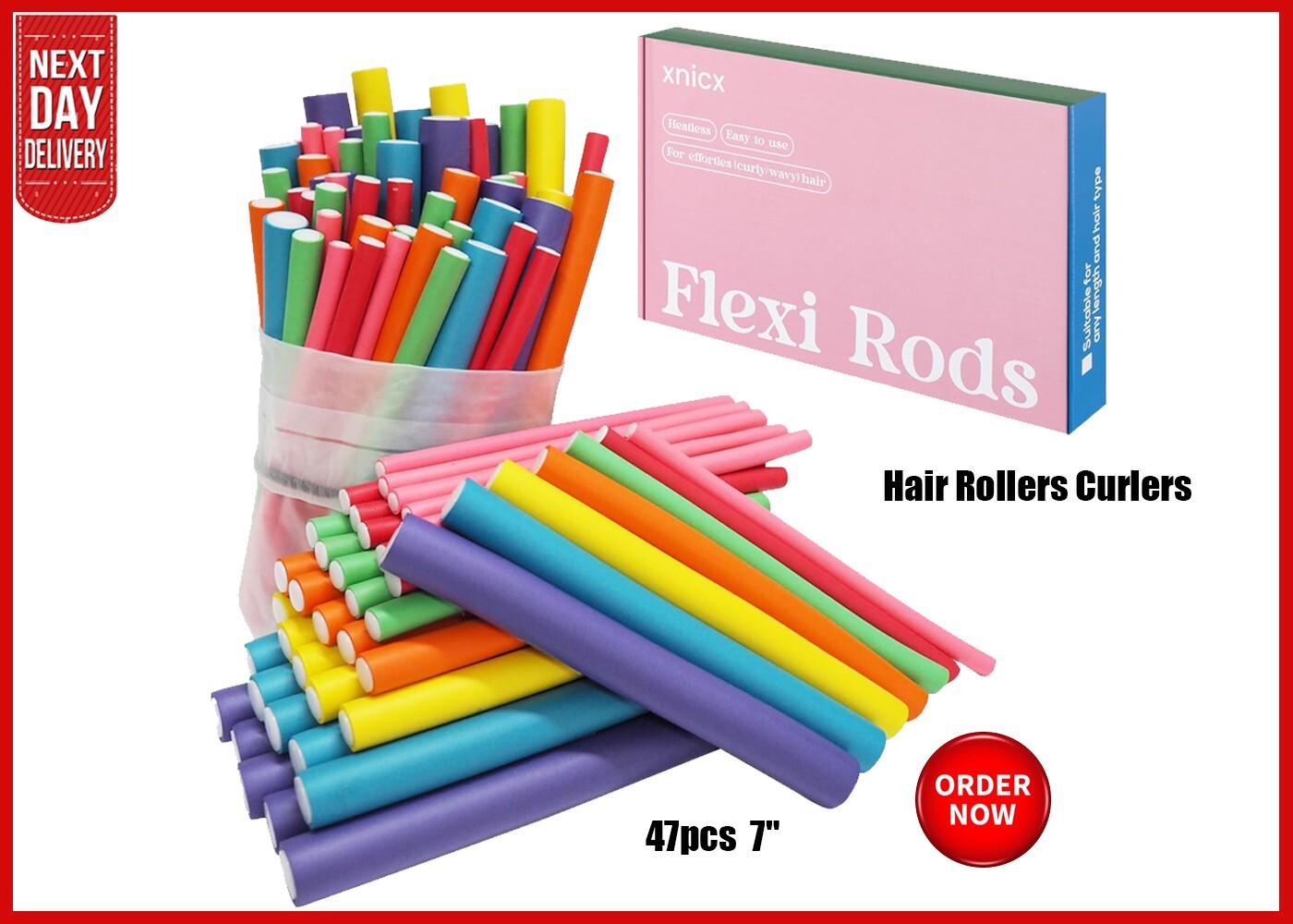 xnicx 47pcs 7" Hair Bendy Foam Rollers Curlers for Long and Short Wave Hair