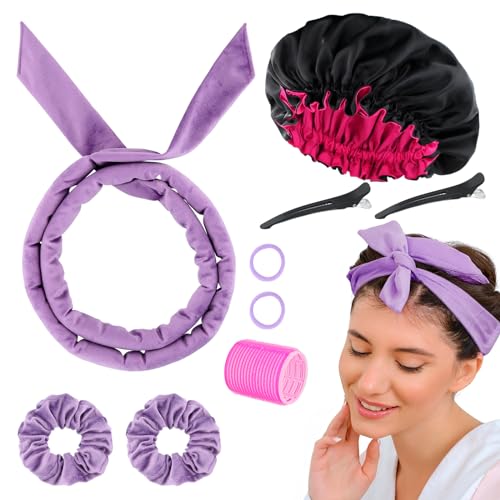 9 PCS Heatless Curlers Headband Set, Velour Heatless Curls, Soft and Comfortable Heatless Hair Curlers, Hair Curlers No Heat for Short & Long Hair (Purple, 9Pcs)