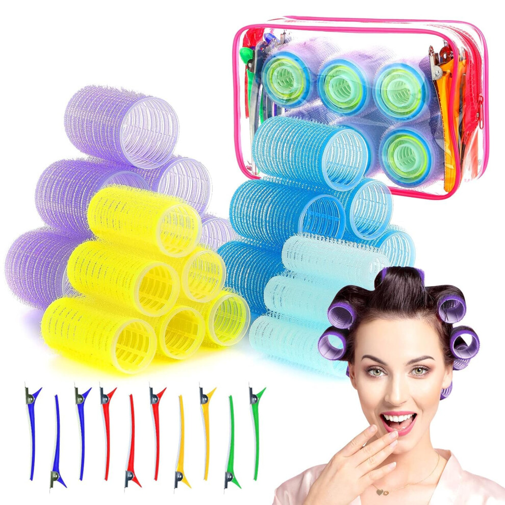 Heatless Hair Rollers Set with 4 Sizes for Short Medium Long Hair, Self Grip Curlers and Clips