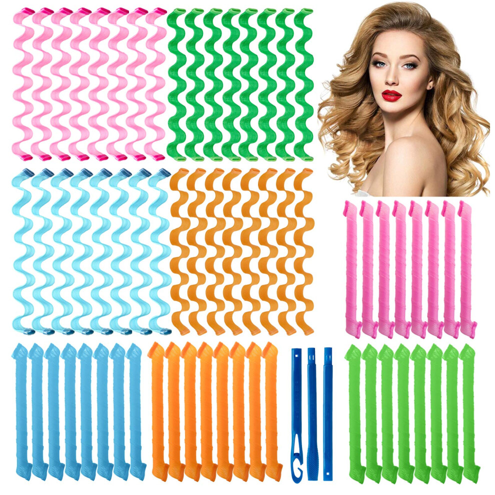 64pcs Extra Long Spiral Heatless Hair Curlers No Heat Styling Kit with Hooks for Long Hair 45cm