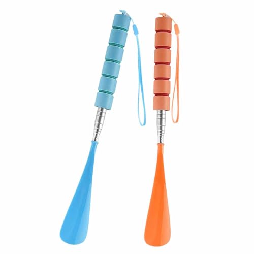 LAIXIABAO 2 Pcs Long Handled Shoe Horn Travel Shoe Horn Metal Shoehorn, 11in-27.5in Extendable Shoe Horn for Men, Women, Kids, Seniors (Blue+Orange)