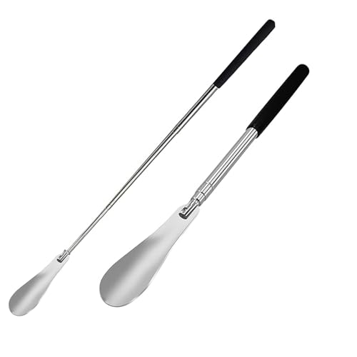 FILOEEX 2 Pcs Telescopic Long Handled Shoe Horn, Retractable Stainless Steel Long Handled Shoe Horn Extendable Shoes Horns Portable Shoes Spoon with Comfort Grip for Men, Women, Travel and Home Use