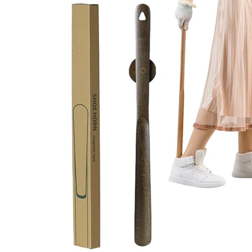 Pasdrucn 50cm Long Handled Shoe Horn with Magnetic Holder, Long Shoe Horns for Men, Wooden Shoe Horn Long Handled, Large Wood Shoehorn Shoe Stick Helper for Women The Elderly Men (Dark brown)