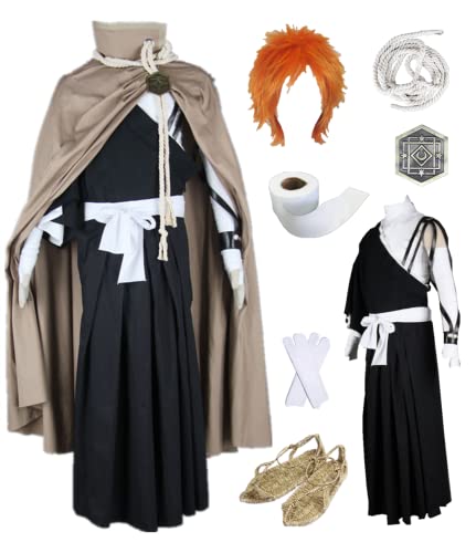 MANMICOS US size Anime Kurosaki Ichigo Cosplay Costumes Long cloak kimono suit (Large)