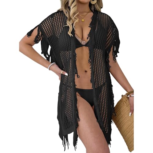Qaonsciug Womens Swimsuit Cover Up Tassel-Fringe Coverups Summer-Beach-Swimwear Bathing Suit Loose Half Sleeve-Swimwear Long Kimono Cardigan Open Front Swimsuit Cover Up For Womens Long