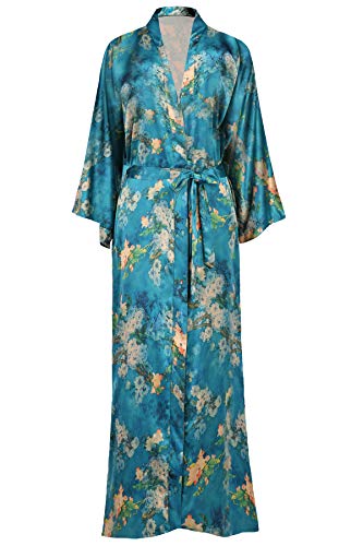 BABEYOND Women's Long Kimono Robes Dressing Gown Satin Floral Kimono Robe Long Chinese Japanese Style for Nightwear Girl's Bonding Party Wedding Pajama Party(Style-4-MalachiteGreen)