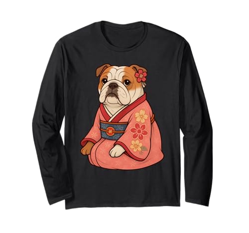 Anime Kawaii English Bulldog Dog Japanese Kimono Long Sleeve T-Shirt