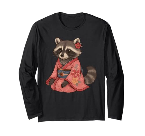 Anime Kawaii Raccoon Japanese Kimono Long Sleeve T-Shirt