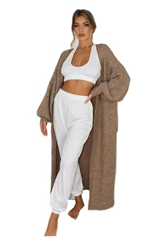Candid Styles Ladies Long Maxi Knitted Cardigan Balloon Sleeve 2 Pocket Womens Open Front Boyfriend Cardigans Top (Brown, 8-14)