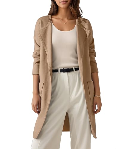 Timuspo Womens Camel Coatigan Open Front Long Knitted Cardigan Oversized Winter Coat Light Trendy Jackets Classy Sweater Khaki S