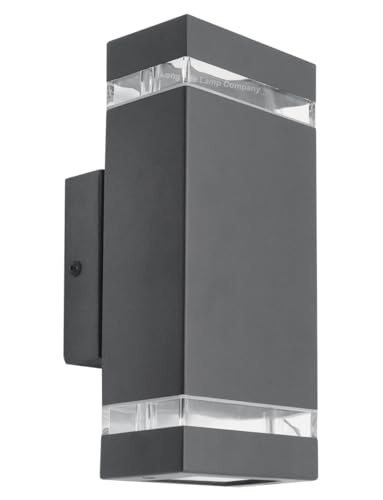 Long Life Lamp Company Rectangular Up Down Outdoor Wall Light Anthracite IP44 Clear Diffusers Modern Minimalist GU10 Garden Wall Light ZLC368B (Pack of 2)