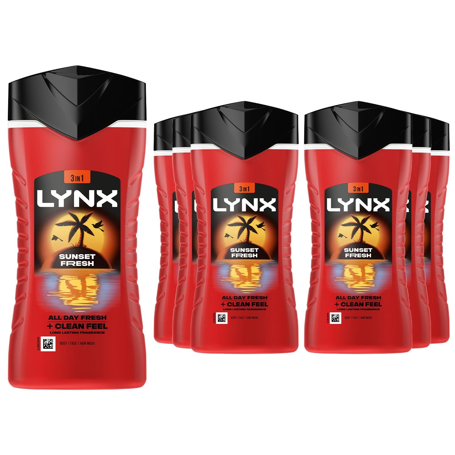 Lynx Mens Men Sunset Fresh 3 in 1 Body Wash with Long Lasting Fragrance 225ml, 24 Pack - One Size