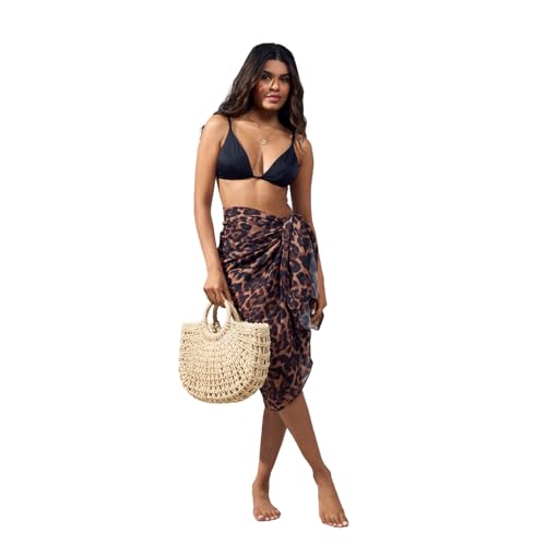 OHS Sarongs for Women Beachwear Leopard Print Beach Bikini Cover Up, Long Swimsuit Wrap Skirt Beach Swimming Summer Pool Sarongs for Women, Natural - 178 x 124cm