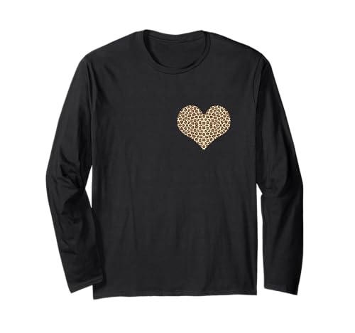 Leopard Animal Skin Print Pattern Heart Shape Cool Graphic Long Sleeve T-Shirt