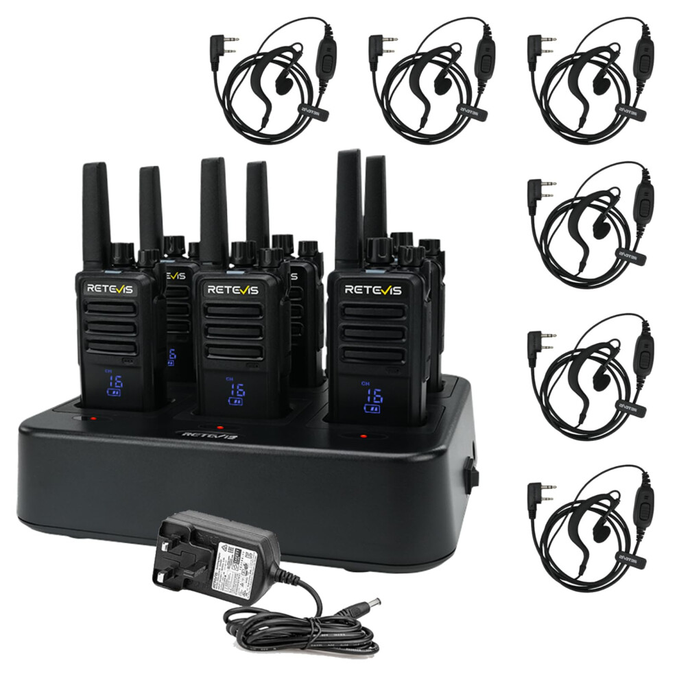 Retevis Long Range Walkie Talkies 6-Way Charger 16 Channels VOX, PMR446 (6 Pack)