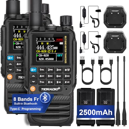 TIDRADIO TD-H3 Ham Radio, Air Band Reception, Type C &Wireless Programming Walkie Talkies for adults, Frequency Match,Dual Band Two Way Radio, Long Range Handheld Amateur Radio for Camping -2 Pack