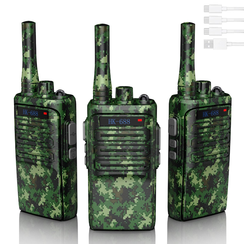 Long Range Walkie Talkies for Adults, Rechargeable Two Way Radios with LED Torch, 3 Pack Camouflage