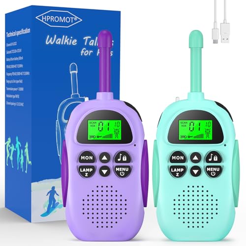 HPROMOT Rechargeable Walkie Talkie Kids 16 Channels 2 Way Radio 3 Km Long Range Walkie Talkies With LCD Flashlight Toys Gifts for 3-12 Boys Girls Indoor Outdoor Adventures Camping Hiking