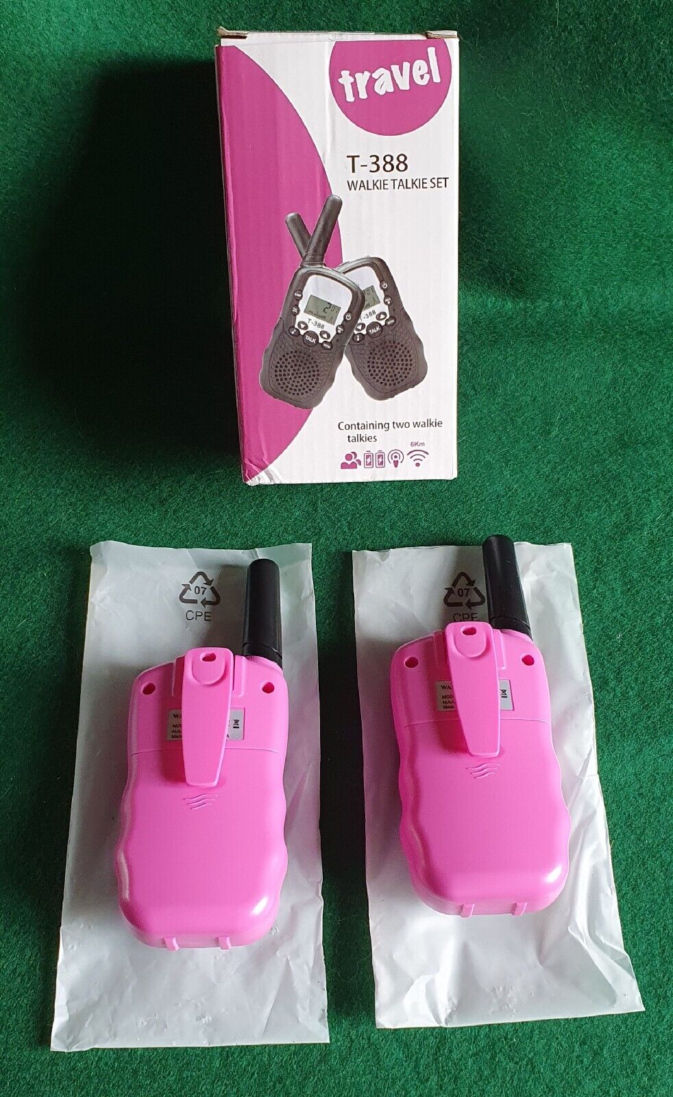 NEW! TRAVEL - T-388 KIDS WALKIE TALKIES LONG RANGE (UPTO 6KM) FLASHLIGHT - PINK