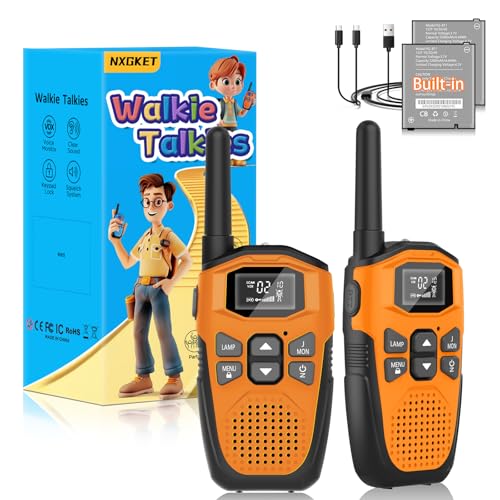 Walkie Talkies for Adults Kids Long Range,NXGKET Rechargeable Walky Talky Radio 2 Pack With Built-In Batteries,Kids Toys for 3-12 Years Old,VOX 16 Channels Usb Type-C Cable For Outdoor Camping Hiking