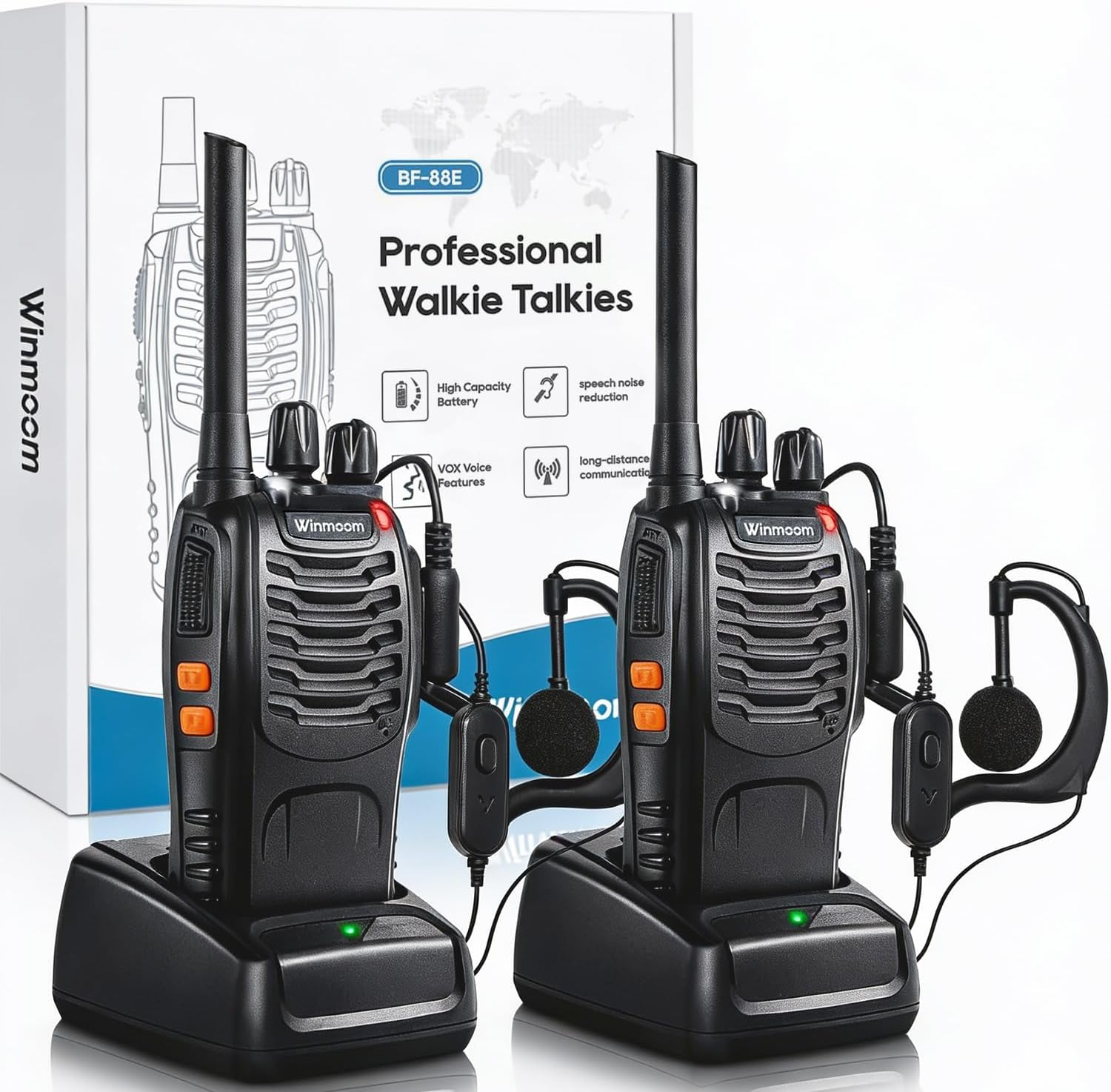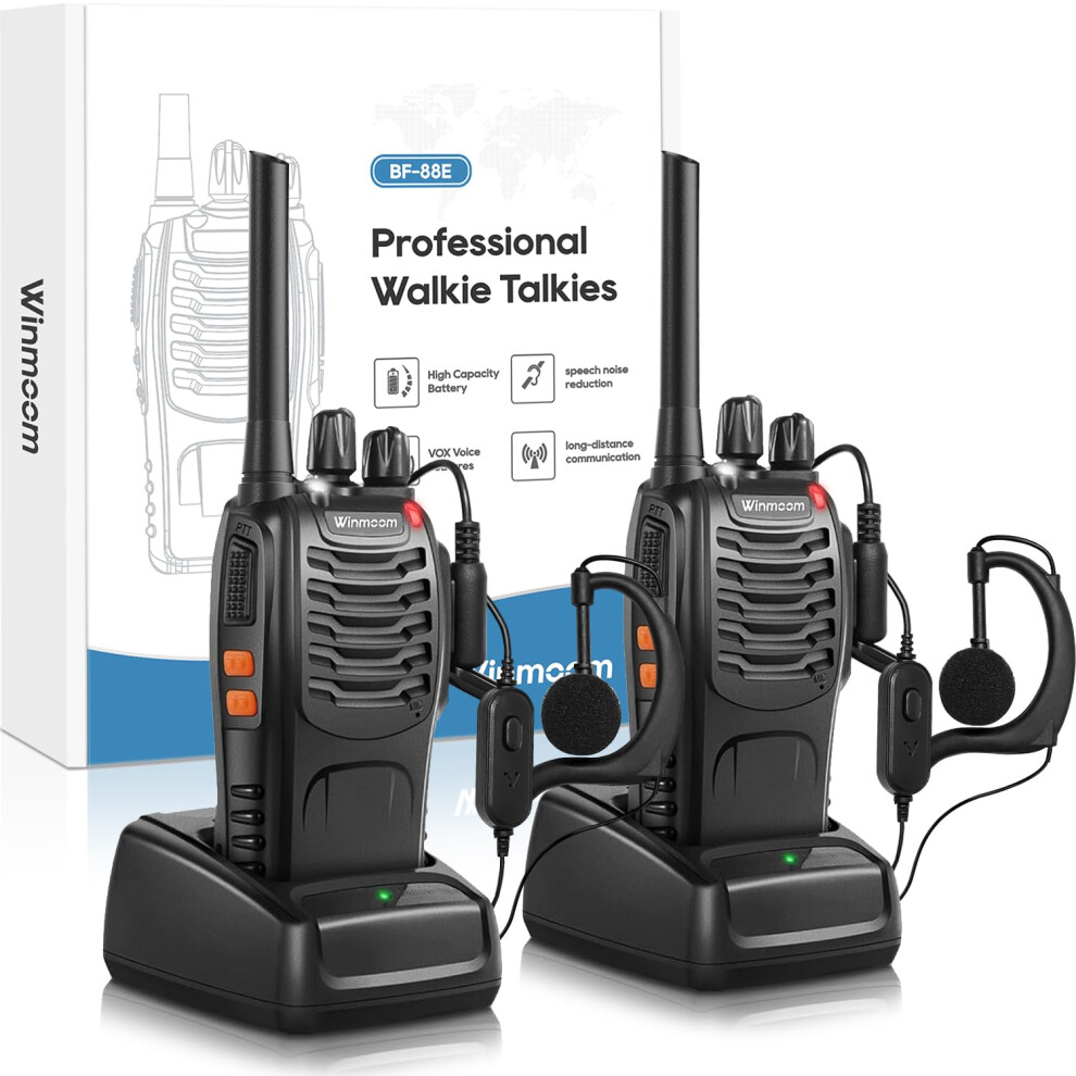Winmoom Long Range Walkie Talkies,16-Channel USB Rechargeable Walkie Talkies for Adults & Kids, 2-Way Radio Kit with LED Light, Earpieces and Charger (2 Pack)