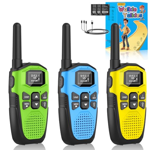 QNIGLO Rechargeable Walkie Talkies 3 Pack, 8 Channels PMR Two Way Radio Toys, Kids Walkie Talkies with Rechargeable Battery, 2 Miles Long Range for Hiking, Camping, Outdoor Adventures