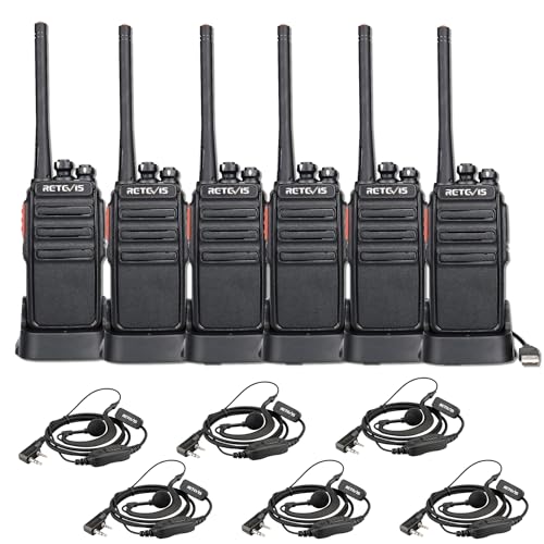 Retevis RT24 2 Way Radio, Loud Audio, 10h Use, PMR446 Walkie Talkies Long Range, 16 Channels, Rechargeable Walkie Talkies with 6 Earpieces and USB Charging Base for School, Retail Store (6 Pack)